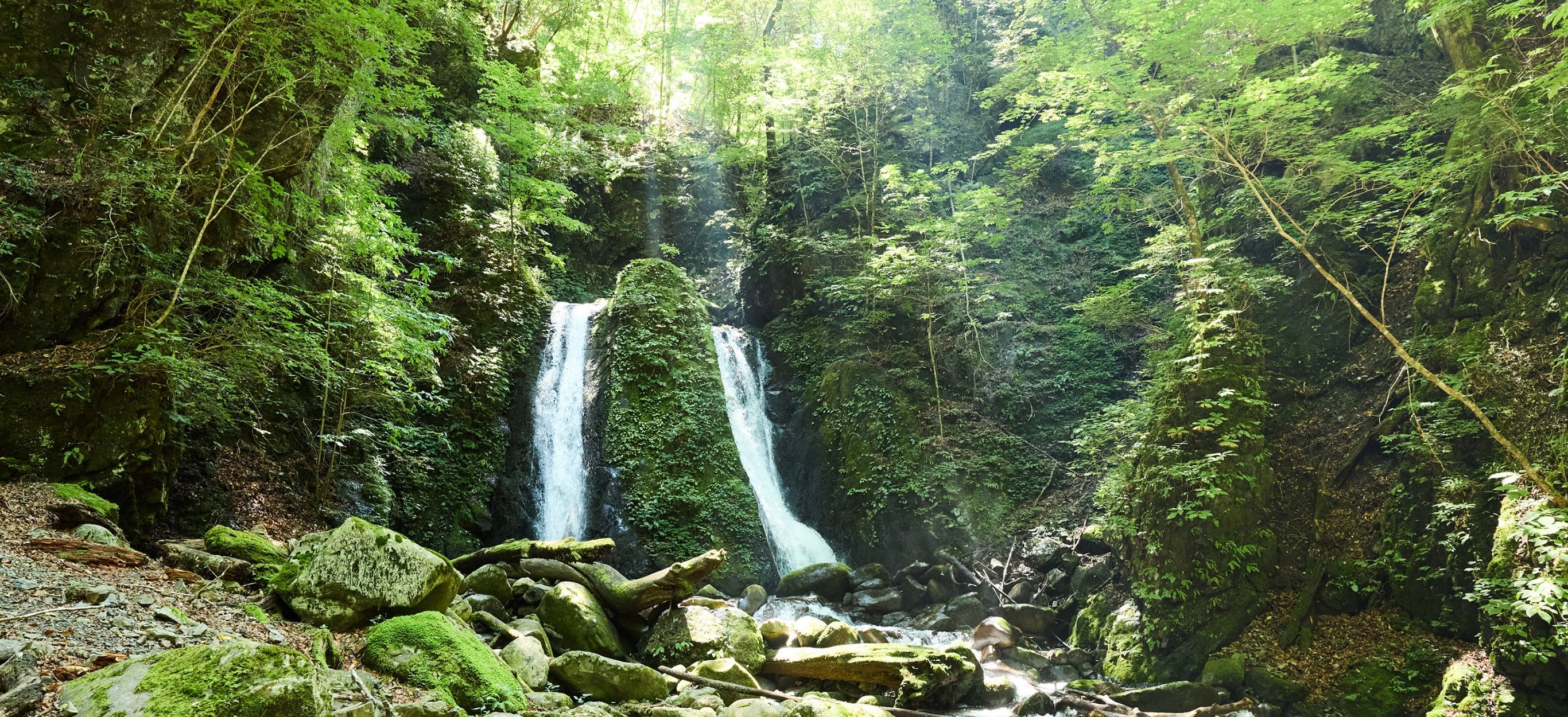 山梨県北東部、都内を流れる多摩川の源流部に位置する小菅村。1,000m級の山々に囲まれ、標高は奥多摩湖面の約530mから大菩薩蓮山の約2,000mまでと高低差に富んでいます。総面積の約95%を森林が占めており、森ではミズナラやブナの原生林、イノシシやクマなどの大型ほ乳類や野鳥、花々の観察を楽しむことも。なかでも、小菅村の源流部にある「雄滝」や「白糸の滝」は幻想的な景観で、冬の寒い時期には滝全体が凍る氷瀑を見ることができます。都心から車で約2時間にもかかわらず豊かな自然を堪能できる環境として、毎年多くの観光客やフィールドワークに取り組む学生が訪れている村です。