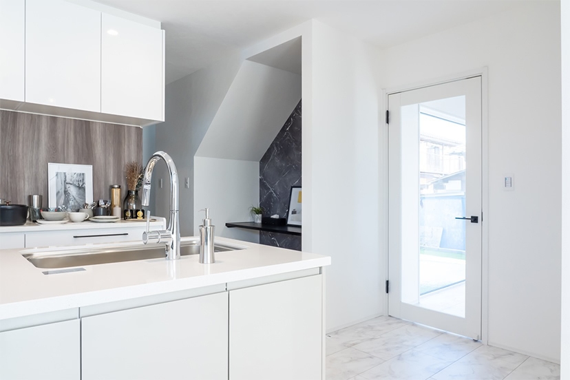 スマイルハウスは、注文住宅をつくる会社です。ハイクラスな「スマイルエコ」、スマイルエコより仕様などを手ごろにした「ハピスマ」、企画型住宅の「コンパクトスマイル」の3種がありますが、今回はモデルハウスとして使用していた最高品質の「スマイルエコ」を分譲します。スマイルエコは、高品質な設備仕様にこだわった家。耐震性や耐火性など災害に強く気密性に優れた2×4工法で、住宅性能にもこだわった家というと、価格が気になるところですが、スマイルハウスでは建材となるパネルの加工を自社グループで行うなどのさまざまな工夫で、若い子育て世帯にも手が届きやすい価格で販売することを実現しています。