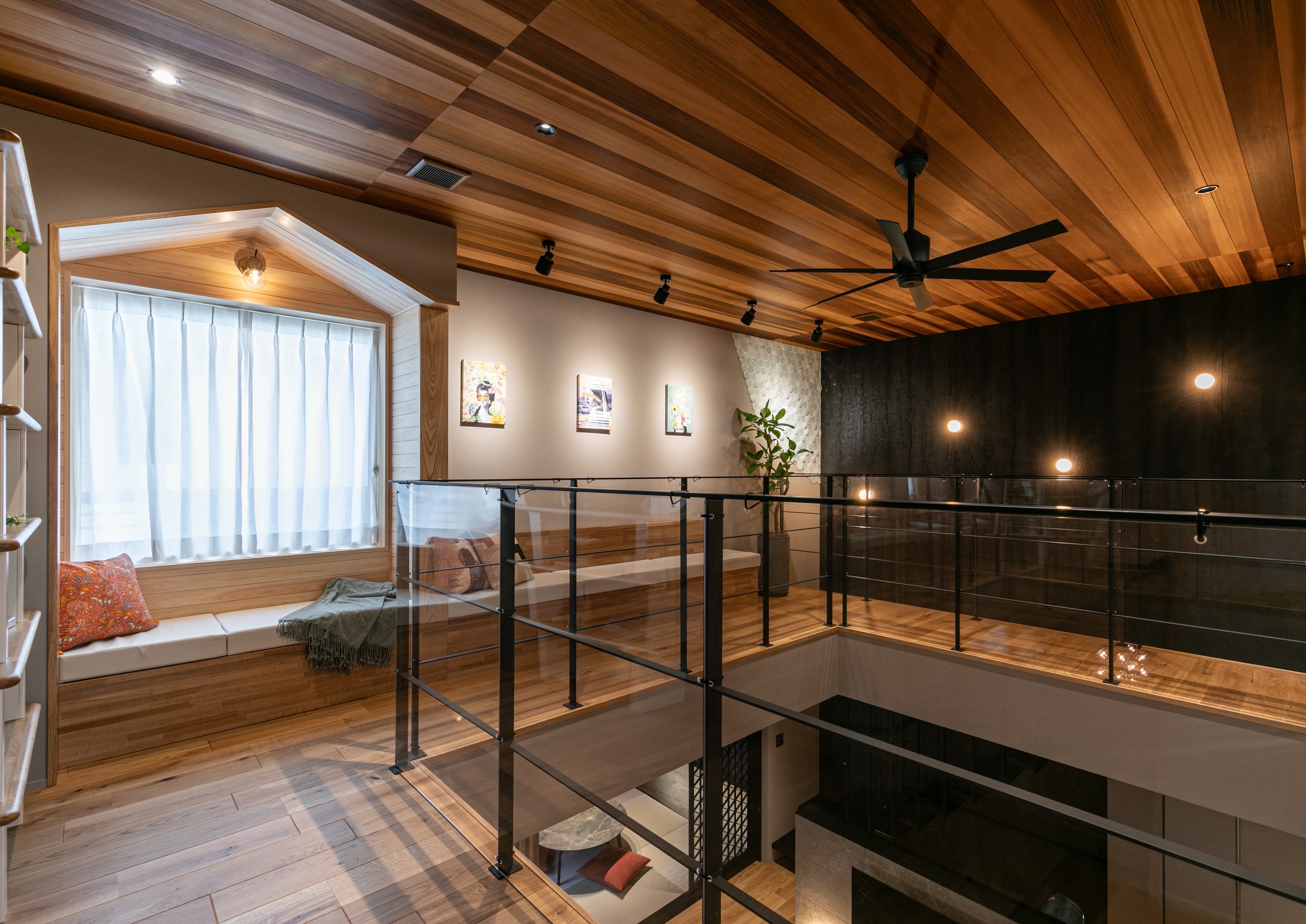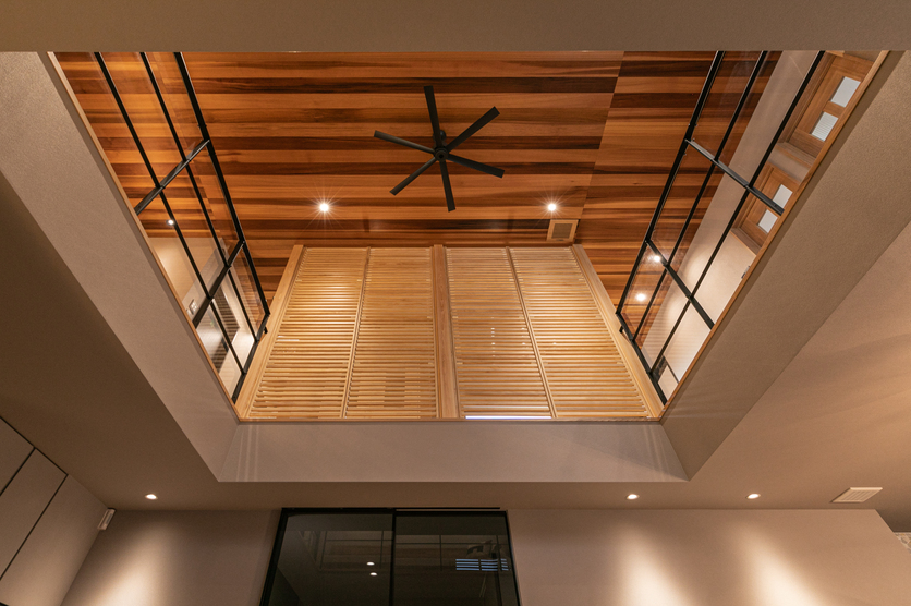 この家はパナソニックの最新技術と当社の設計施工力を集結させました。まず、震度7の地震と余震を想定した耐震性に加え、断熱等級7と最上級の断熱性で家のなかは真冬でも15度を下回らず、全館空調によりエアコン1台で快適に過ごせます。また将来のライフスタイルの変化を想定し、1階のみで生活できる平屋建ての特⾧を取り入れ、玄関横に寝室や水回りを設け、2階は可変性が高いシンプルな間取りにしました。住まう人に合わせて、細かくご提案するのは当社ならではです。
