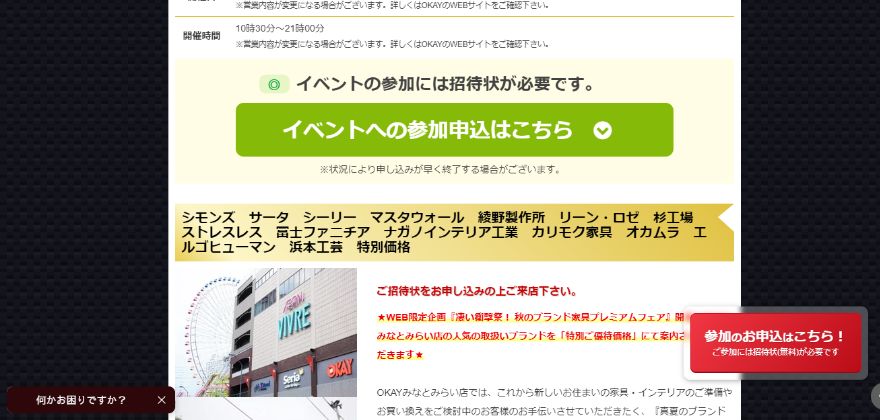 招待状を持参して会場へ。プリントした招待状またはスマホのメール提示で、割引などの限定特典が受けられます。