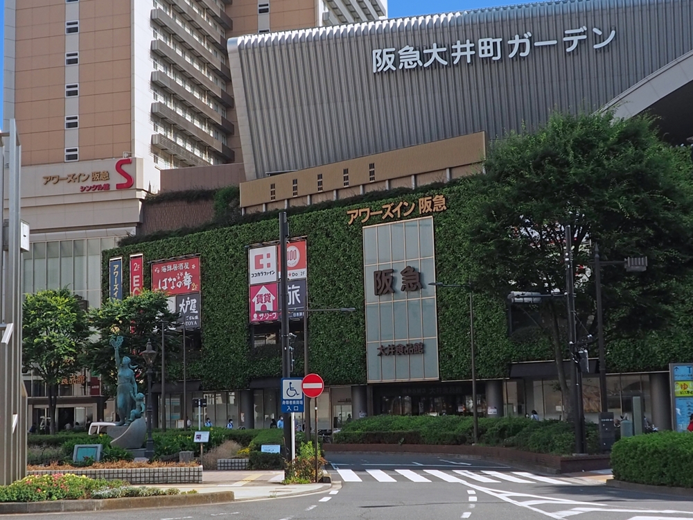 JR大井町駅の西隣に位置し、グリーンカーテンをまとった外観が特長的な複合商業施設。「ホテルアワーズイン阪急」と「阪急百貨店大井食品館」、スーパー銭湯「おふろの王様」のほか、テニススクール、カフェ、レストラン、100円ショップ、ドラッグストアなど、ショッピングやリフレッシュに立ち寄りたい店舗が集まっています。