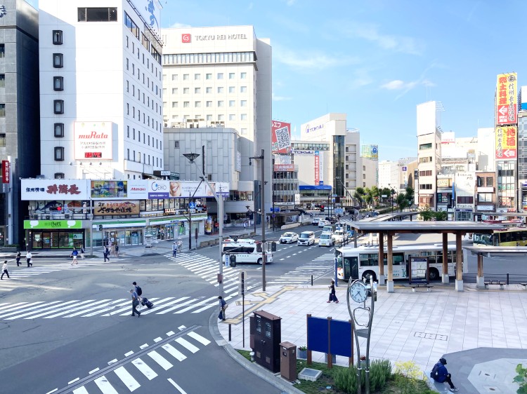 市の中心部にある長野駅は、JR北陸新幹線と在来線、しなの鉄道北しなの線、長野電鉄長野線が乗り入れるターミナル駅。北陸新幹線を使えば、東京まで最速1時間20分ほどでアクセスできます。また、最速1時間5分で金沢へ、約1時間で高崎へもアクセス可能です。