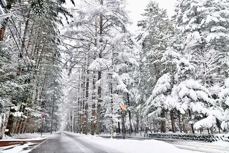軽井沢は標高1,000m前後の高原に位置します。このため、冬の寒さは非常に厳しいです。12月に入ると平均気温は0度前後になり、1月・2月は氷点下1~3度に。1・2月は最高気温でも4度前後で、最低気温はマイナス6~8度になり、一日中氷点下の日も珍しくありません。これは札幌の気温とほとんど変わりのない寒さです。積雪は、長野県内のスキー場が点在するようなエリアに比べて少なめですが、それでも一晩で30cm前後の降雪がある日も。また、気温が低いので積雪がいつまでも残っていることも多いようです。