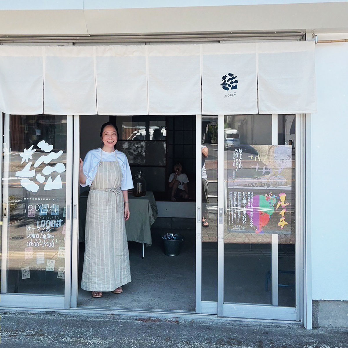 岡生地に本染めというオリジナル手ぬぐいも制作。「100日荘」で販売中