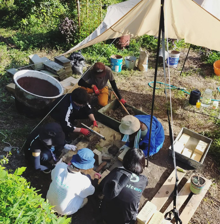 徳島県内の大学生たちに向けてのワークショップで、五右衛門風呂づくりに初挑戦