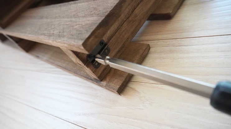 木箱一つにつき木ネジ3本ぐらい使うとよいです。