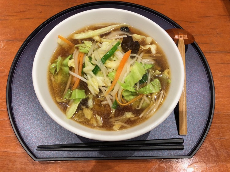 キャベツなどがたっぷり入ったしょうゆ味の野菜らーめん。野菜らーめんはしょうゆ、味噌、塩から選べます。メニューが豊富にあるのもうれしい