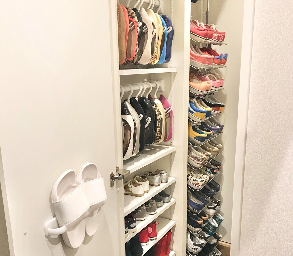 私の収納アイデアの中でもトップクラスに反響があった靴のハンガー収納