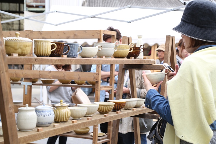 1966(昭和41)年から続いている栃木県益子町の陶器市。例年、ゴールデンウィークと11月3日前後の2回開催されます。春・秋あわせて約60万人が集まるこのイベントでは、販売店約50店舗のほか、約700のテントが並びます。伝統的な益子焼から、カップや皿などの日用品のほか、美術品や地元農産物、特産品など、さまざまな“手仕事の品”が集結。通常よりも低価格で販売されていることもあるので、作家さんとの会話を楽しみつつお気に入りを見つけてみては。